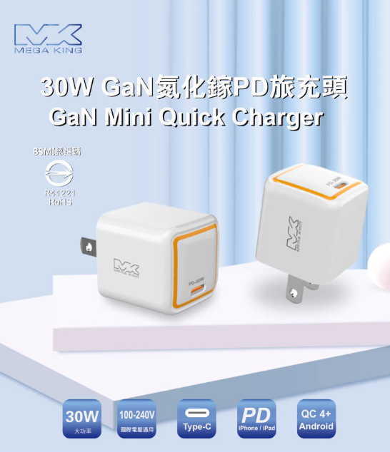 首頁 > 購物車總覽(隱藏) > 【充電頭】MEGA KING 30W GaN氮化鎵電源供應器