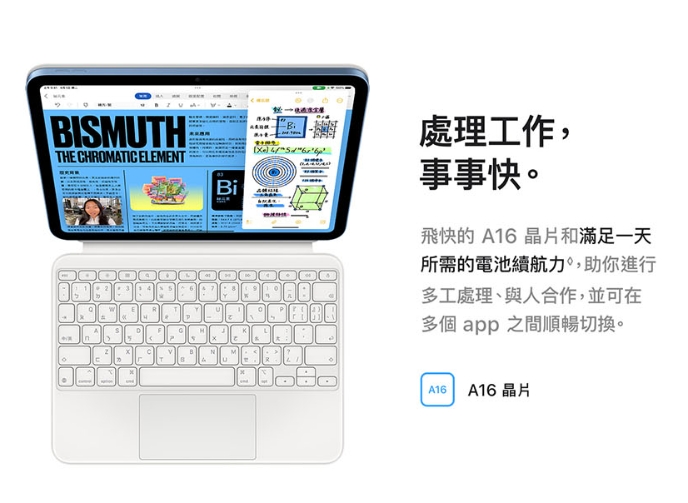 Apple iPad 11 (2025) Wi-Fi 升級採用 11 吋 Liquid Retina 顯示器,提供 2,360 x 1,640pixels 解析度,擁有最高 500nits 亮度,螢幕表層含有防指印疏油外膜,具備原彩顯示功能,強調在面對不同的光線下都能看得很舒服,隨時享有沉浸式的視覺體驗。