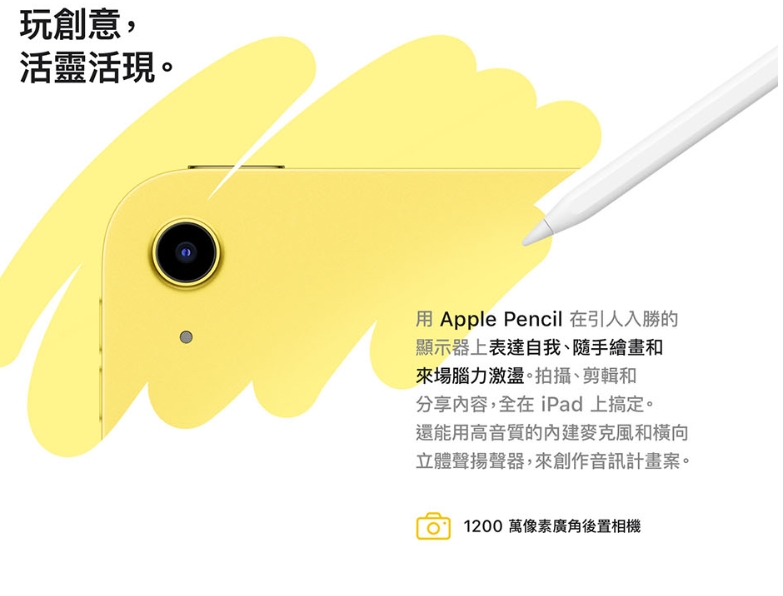 Apple iPad 11 (2025) Wi-Fi 採用 1,200 萬畫素居中前相機,無論 FaceTime 通話、參加視訊會議,都能確保人物在畫面中央位置。後置 1,200 萬畫素主鏡頭,最高可達 5 倍數位變焦,支援 Focus Pixels 自動對焦。前後鏡頭具備 智慧型 HDR 4,以及最高 1080p 電影級視訊穩定功能。