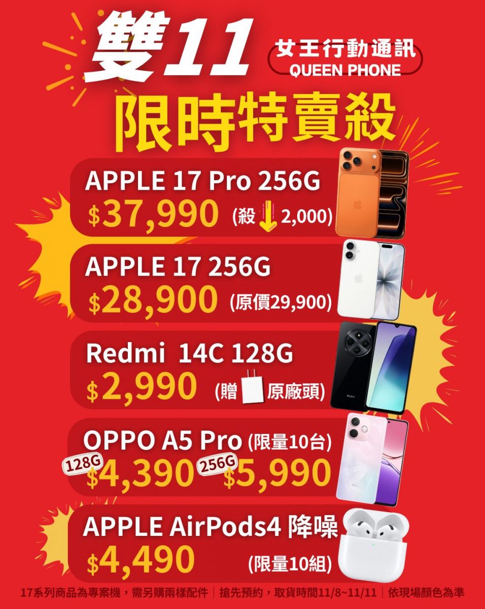 #雙11特殺 #限時優惠 #女王行動通訊 #手機優惠 #現貨開搶 #iphone17pro