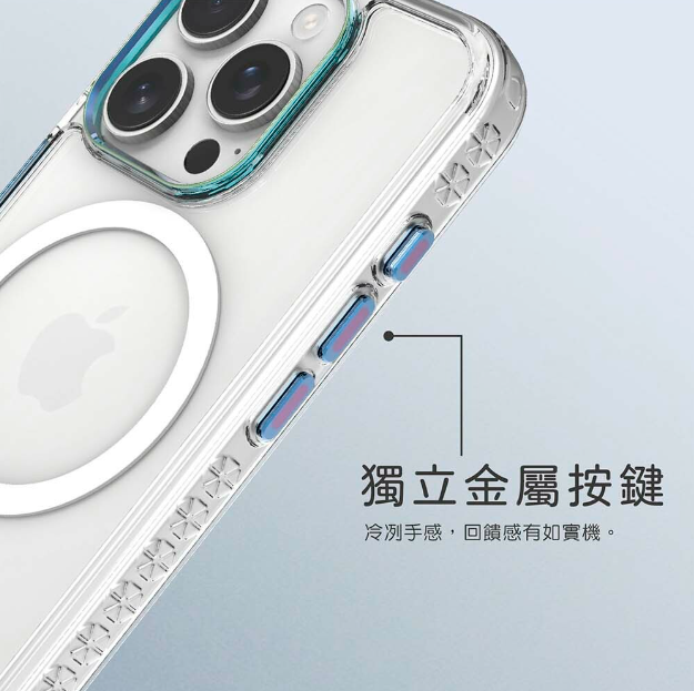 鋁合金按鍵仿原機手感+金屬鏡頭保護框。