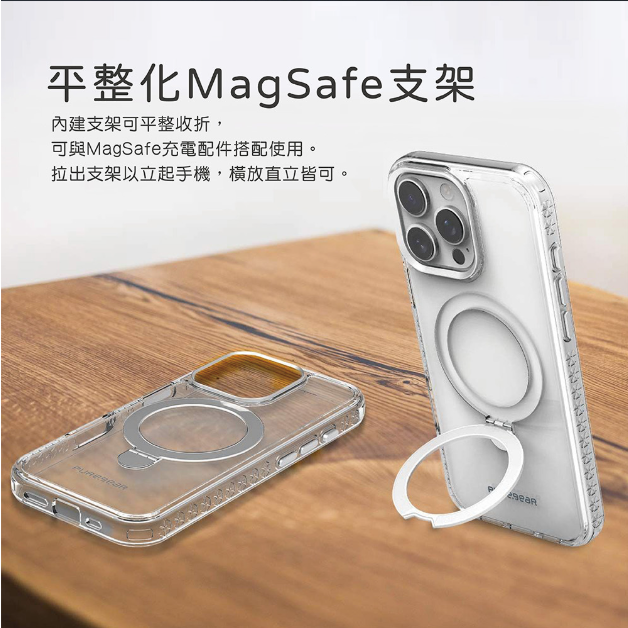 平整化Magsafe支架,內建支架可平整收折,兼容Magsafe無線充電。